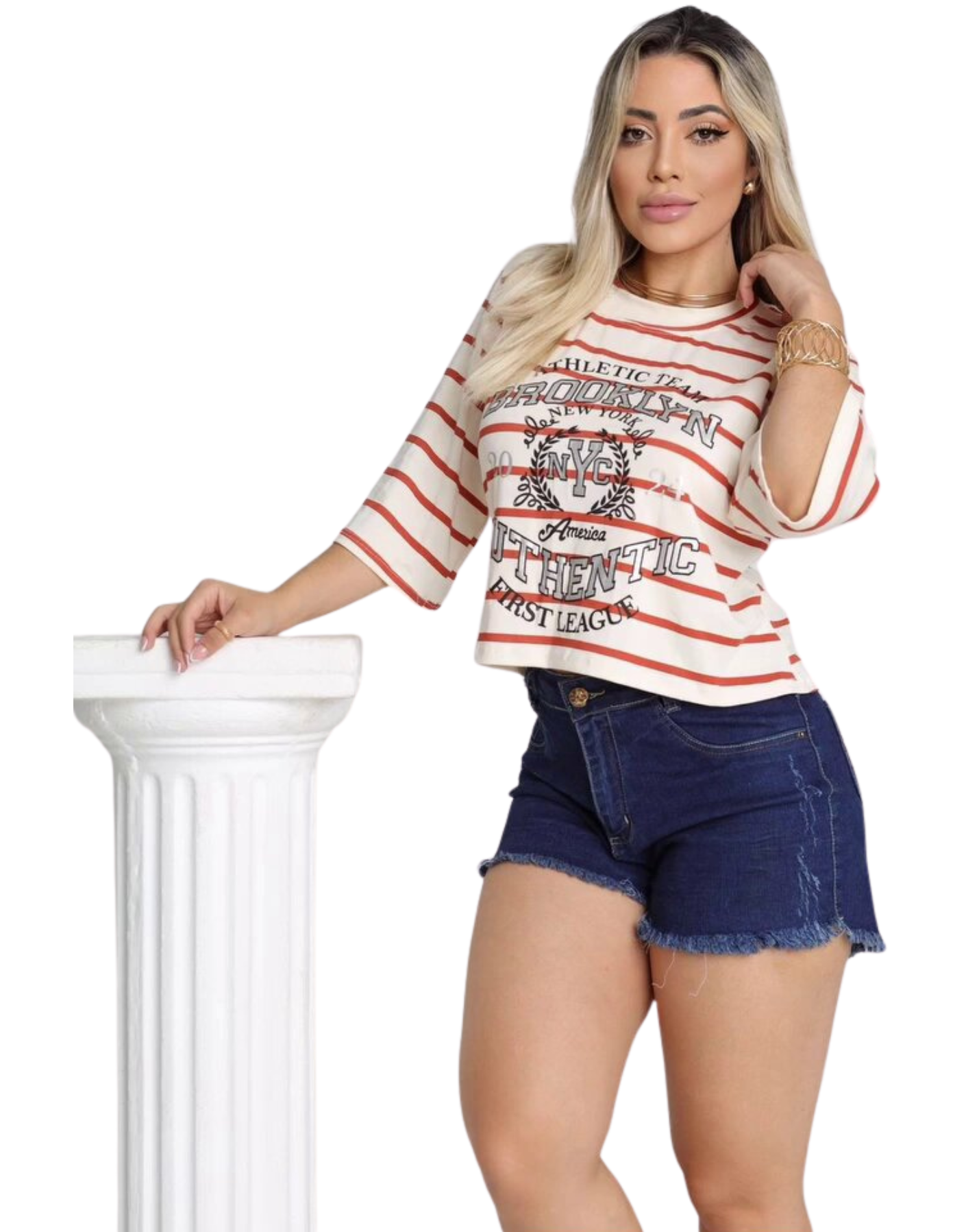 Blusa Listrada manga virada